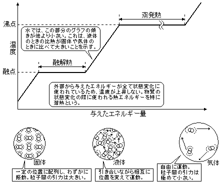 物質に単位時間あたり一定の熱量を与えたときの温度変化のようすは、次のようになる。